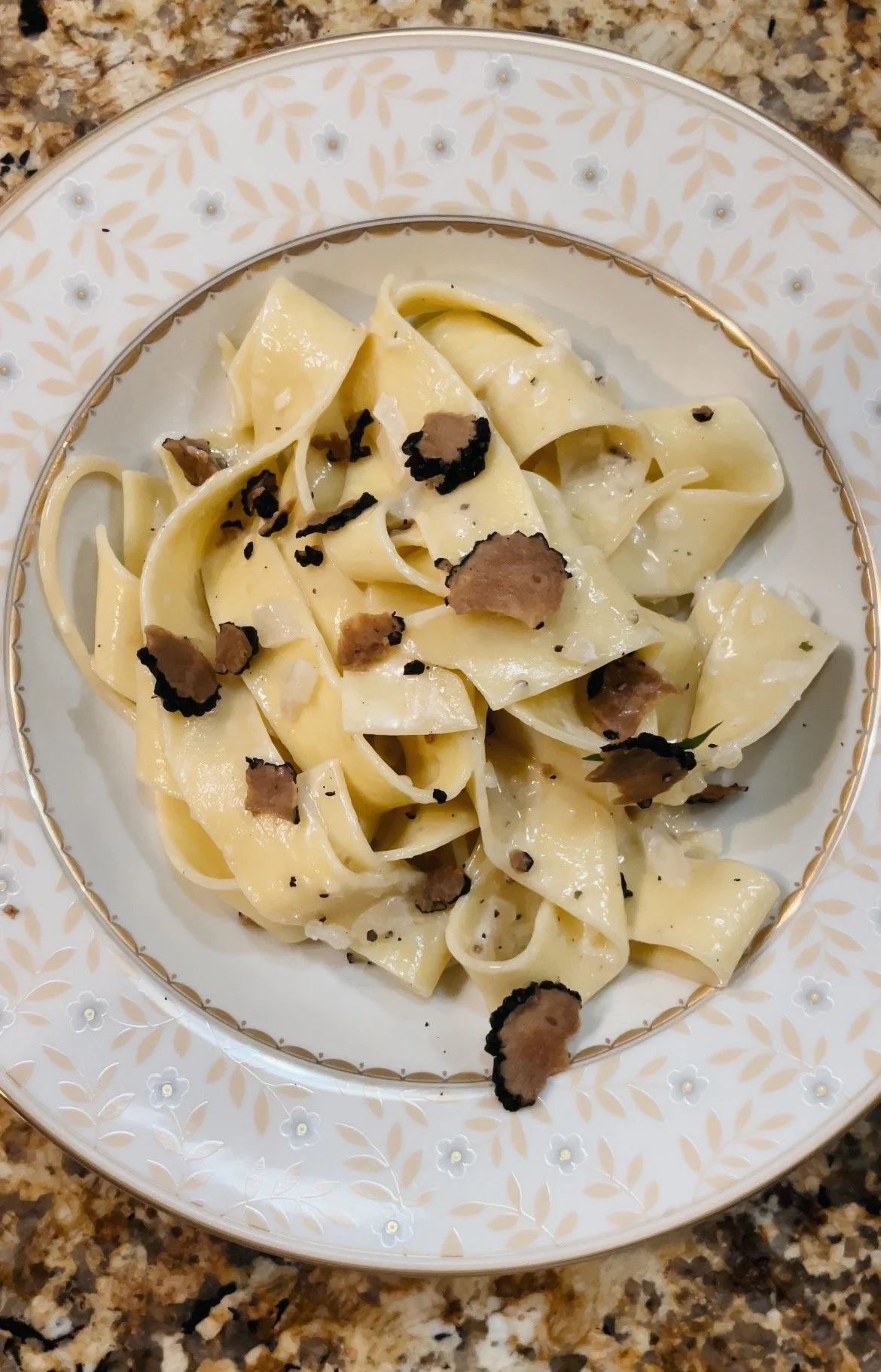 Serve in pasta bowls and add freshly shaved truffles or the dehydrated truffle salt on top. You can sprinkle more parmesan cheese if you’d like, because why not? Drizzle a little bit of your favorite extra virgin olive oil for some extra richness (It’s for elevating the dish, trust me 🙈)